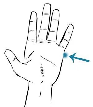 Pour le trouver, il se situe dans le tranchant de la main, là où apparaît le pli de la peau lorsque l’on plie les doigts. C’est à cet emplacement qu’il convient d’effectuer un massage en effectuant un mouvement circulaire, et en effectuant de légères pressions avec vos doigts de la main opposée.